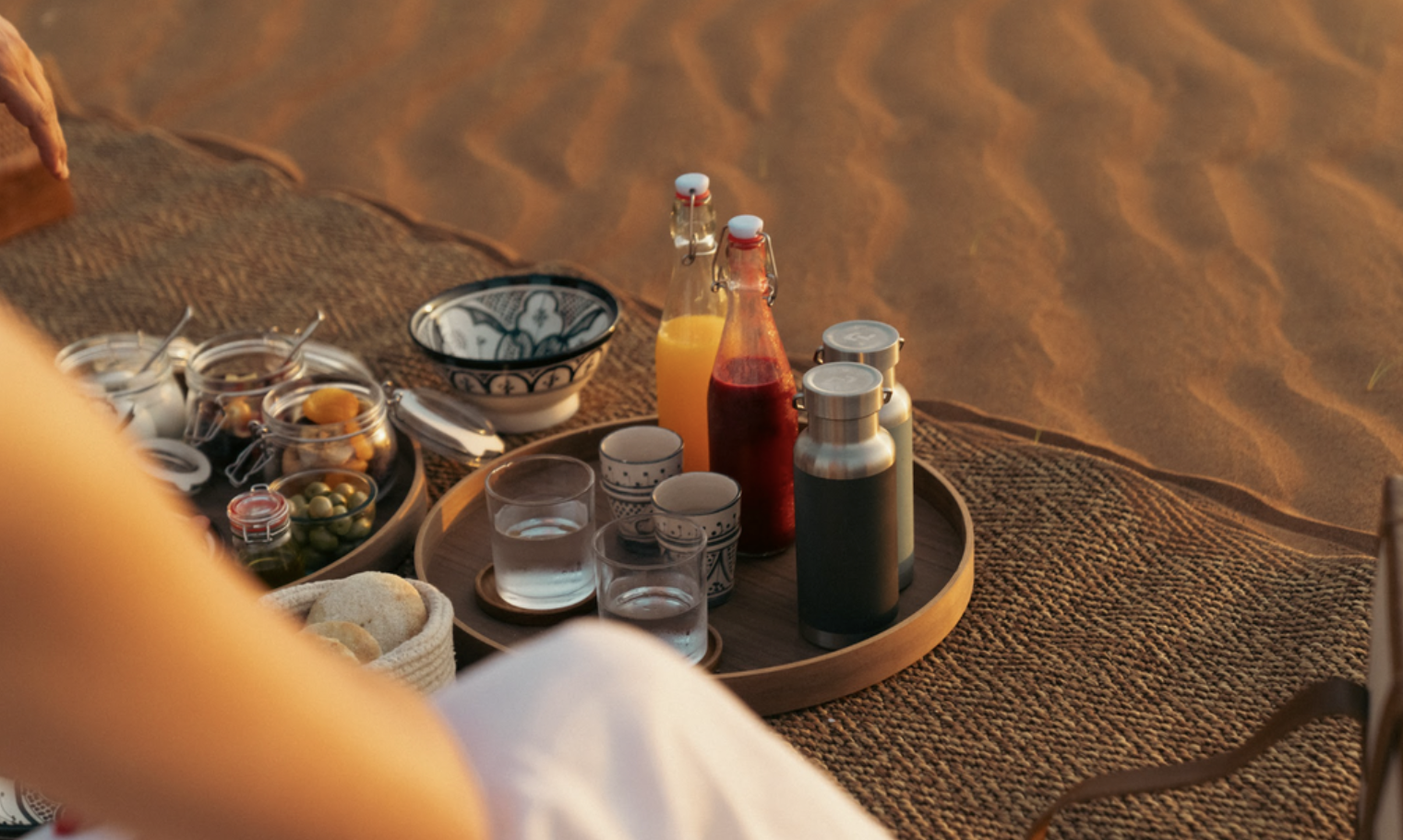 يُقدَّم مشروب دافئ لاستقبال الضيوف وإدخالهم في إيقاع الجبل. الصمت هنا ليس فراغًا، بل حضور. أحيانًا مكتمل ومذهل، وأحيانًا يشكله النسيم، مع صوت الطيور أو خطوات الحيوانات البعيدة. حتى الموسيقى هنا تبدو كعطاء طبيعي، لا كإزعاج.